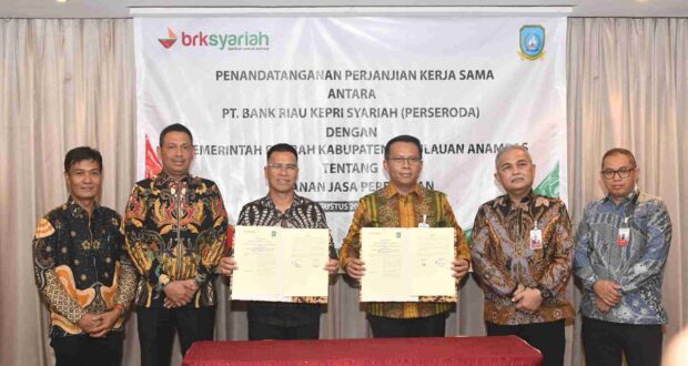 BATAM – Bank Riau Kepri (BRK) Syariah menunjukkan komitmennya dalam mendukung pertumbuhan ekonomi daerah dengan menjalin kerjasama strategis dengan Pemerintah Kabupaten (Pemkab) Kepulauan Anambas Tentang Layanan Jasa Perbankan di Lingkungan Pemerintah Kabupaten Kepulauan Anambas.